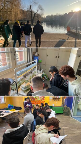 En el cuarto día, participaron en un taller de música con varias clases del centro, donde demostraron sus habilidades rítmicas e instrumentales. Tras el recreo, recorrieron el barrio de Kreuzberg identificando grafitis junto con la clase de 8º.
