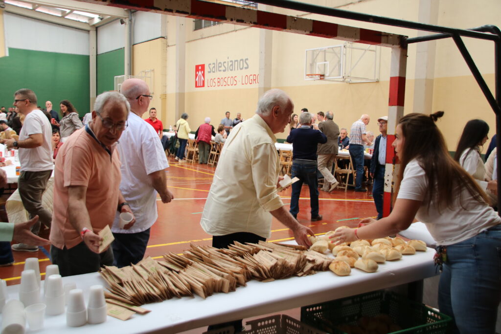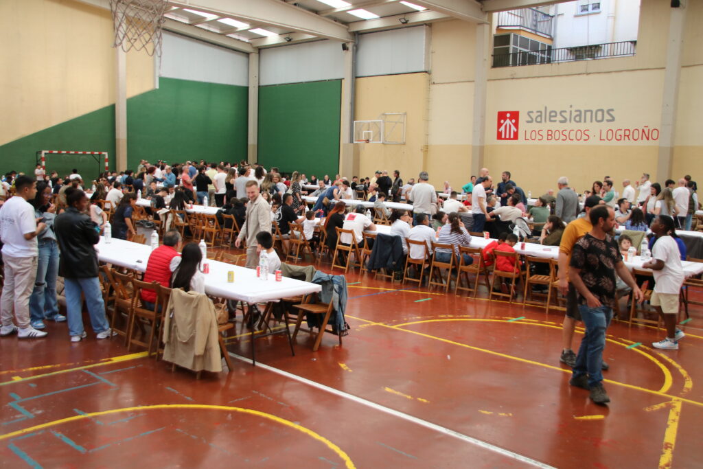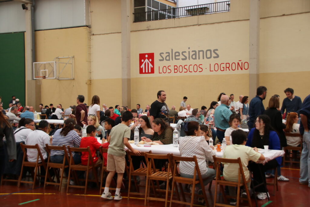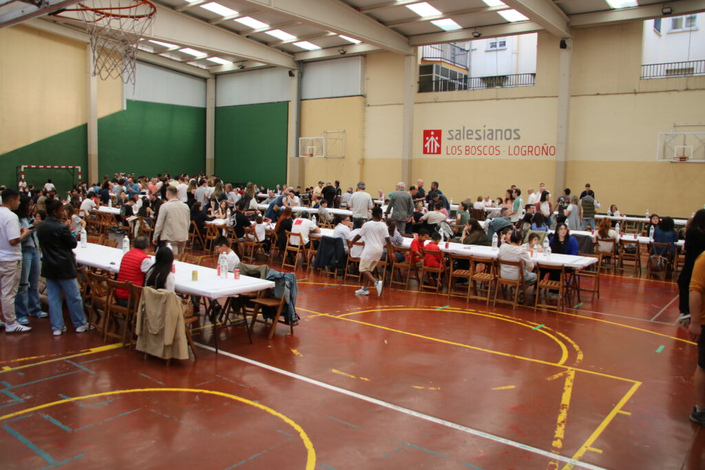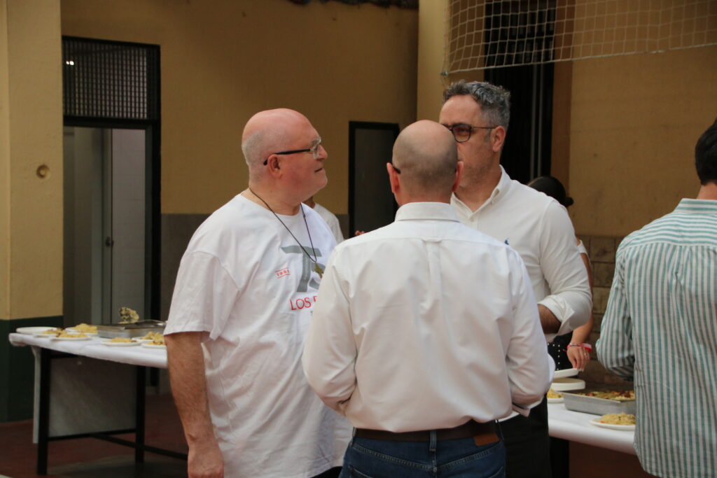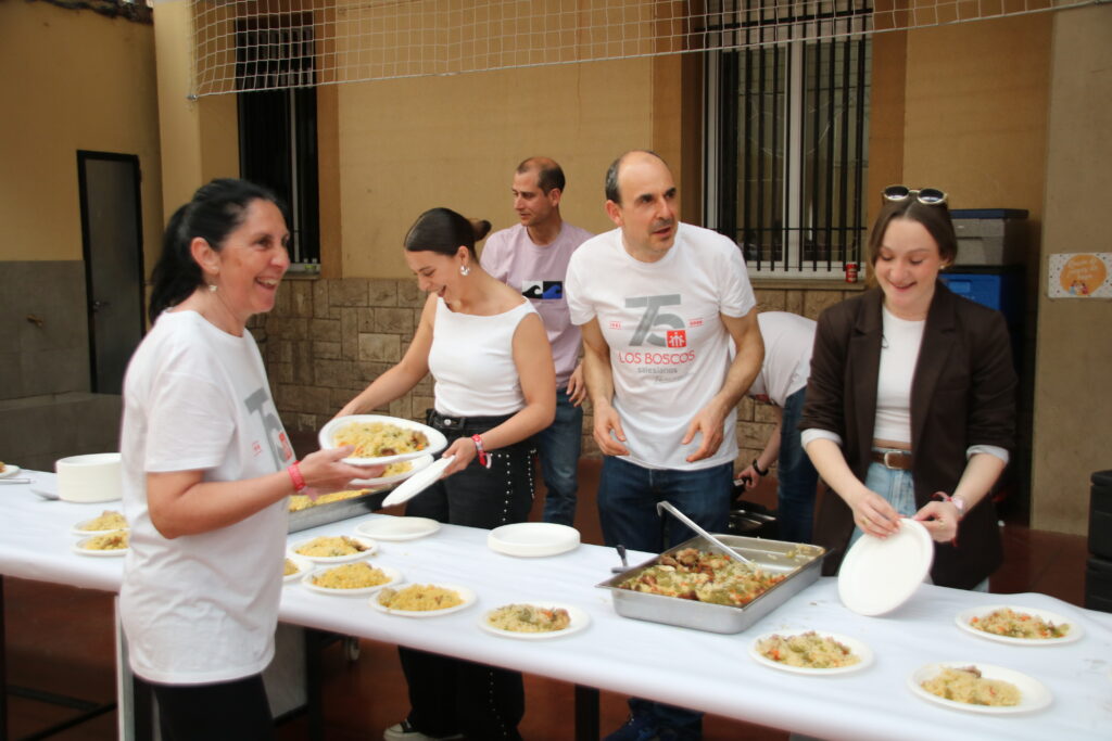 Antiguos alumnos, profesores, directores salesianos que han ido pasando por el colegio, miembros del AMPA, familias y muchos otros disfrutaron del arroz que se había encargado para la ocasión.