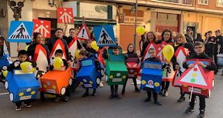 Este año, el disfraz elegido tenía por temática la seguridad vial y la reivindicación de una mejora en el barrio que rodea al colegio. Dicha temática no es casual, ya que todo el centro está trabajando este curso en un proyecto de Aprendizaje Servicio cuyo objetivo es conseguir mejorar en la limpieza y el tráfico de las calles que rodean el centro. Si queréis información sobre el proyecto, podéis pinchar AQUÍ.