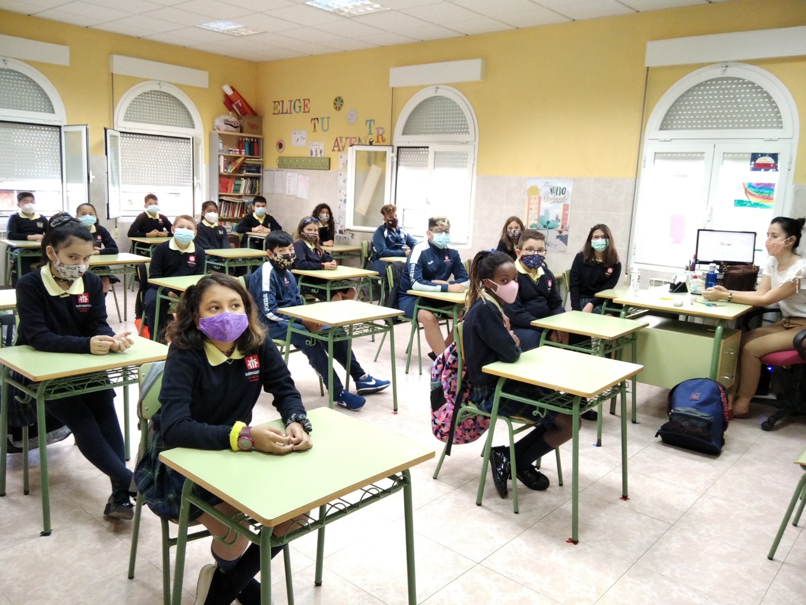 Por suerte, tenemos unos alumnos maravillosos que en tiempo record se han familiarizado con las nuevas normas de entradas, salidas, recreos, organización de las aulas… y hay que añadir que detrás tienen unas familias que nos han ayudado un montón para que la organización saliera lo mejor posible.