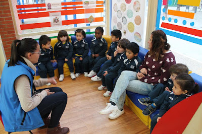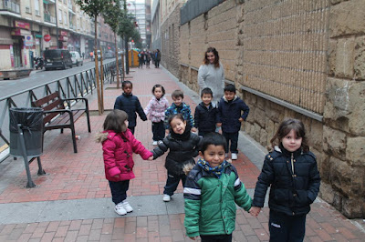 Esta mañana los alumnos de 1º y 2º de Infantil han ido de excursión a la Ludoteca Cucaña situada en la plaza 1º de Mayo. Para los pequeños ha supuesto todo un reto ya que los más lejos que habían ido hasta ahora era una calle más allá del colegio.
