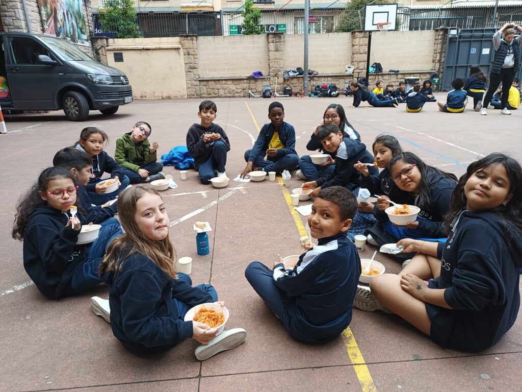 El clima acompañó, la receta estaba insuperable y nuestros peques de infantil y primaria no pudieron portarse mejor en esta comida en el patio del colegio. Tendremos que repetir.