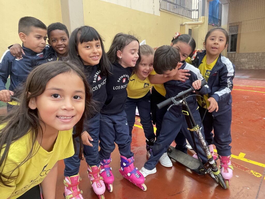 Este año hemos decidido recuperar alguna de las actividades que hacíamos antes. Para comenzar las fiestas, todos nuestros alumnos de primaria han celebrado “el jueves de ruedas” en el que en diferentes turnos han bajado a disfrutar de un rato de patines y patinetes en el patio cubierto. Algunos han aprovechado para recibir nociones básicas y otros para coger toda la velocidad posible sin obstáculos de por medio.