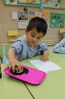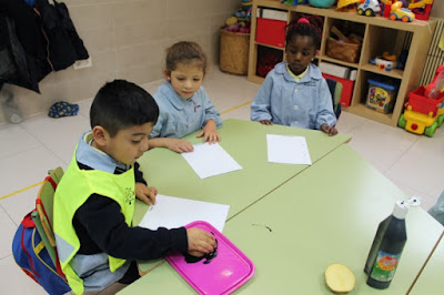 Esta tarde los alumnos de 1º de Infantil han usado una novedosa técnica pictórica. Novedosa para ellos al menos. Y es que han estado pintando con patatas. Si, si, como oís, han usado patatas crudas para conseguir figuras de pingüinos.