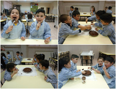 Y lo mejor de todo fue comérlas!!! ñam, ñam qué buenas les supieron! Hubo un momento en el que no se oía nada porque estaban saboreando las tartas tan ricas que habían hecho entre todos.