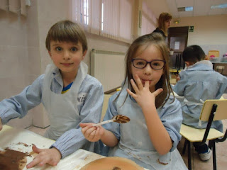 Y lo mejor de todo fue comérlas!!! ñam, ñam qué buenas les supieron! Hubo un momento en el que no se oía nada porque estaban saboreando las tartas tan ricas que habían hecho entre todos.