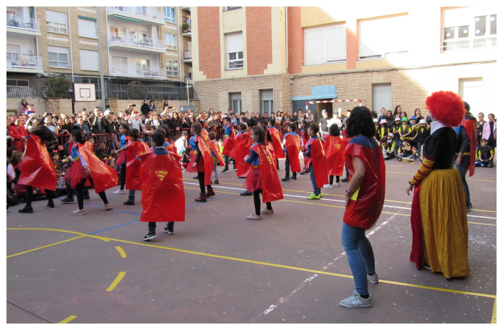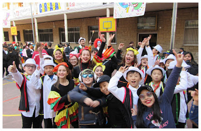 Mención especial tienen los profes de EF que además de pensar varios bailes para sus cursos, han sido capaces de no mezclar unos con otros durante las funciones. Tampoco podemos olvidar a madres y padres que han invertido horas y horas en sus talleres de corte y confección para conseguir que nuestros alumnos aparecieran requeteguapos en la fiesta de carnaval.